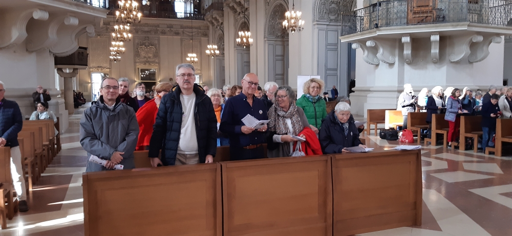 Deutsche Mitfeiernde im Salzburger Dom: P. Clemens Mörmann, Dr. Paul Klein, Edgar Zeitlhöfler, Margit Reif, Sabine Gerhard und Gisela Trost (von links)